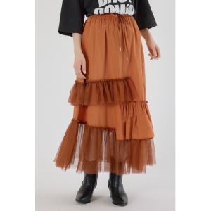スカート リボンヤーンフラノライク_リボンヤーン刺しゅうフレアスカート