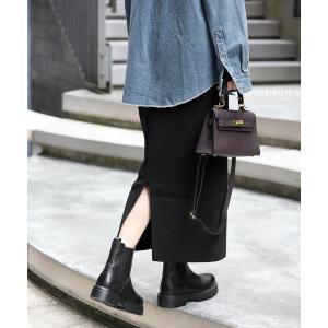 スカート 「S-XLサイズ展開/新色追加」-3kg見え!すっきりリブタイトロングスカート