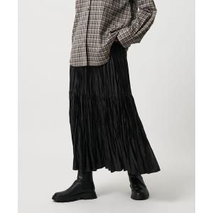 スカート 「秋映え/シワ知らず/ウエストゴム」スエード風プリーツスカート