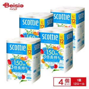 トイレットペーパー 3倍 4個セット シングル スコッティ スコッティ フラワーパック 3倍長持ち トイレットロール 150m 12ロール クレシア