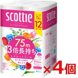 スコッティ フラワーパック 3倍長持ち トイレット シングル 12ロール×4個 | トイレットペーパー シングル 12ロール まとめ買い 備蓄 長持ち 収納 便利 節約 一