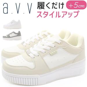 スニーカー レディース 靴 ホワイト 白 ベージュ グレー 灰色 仕事 通学 スタイルアップ 5cm 厚底 防滑 美脚 軽量 軽い シンプル a.v.v アーヴェヴェ 3006