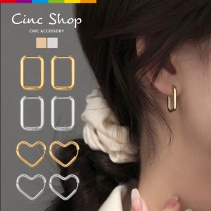 ピアス ステンレス ハート ゴールド シルバー キャッチレス フープ 金属アレルギー 人気 ギフト