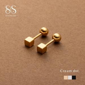 サージカルステンレス ピアス 金属アレルギー つけっぱなし ネジロック式 ボールキャッチ キューブ リバーシブル