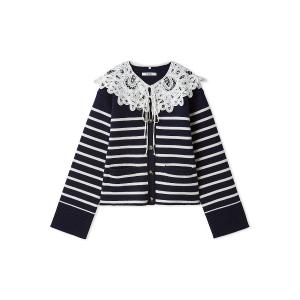 カーディガン バテンレースカラーニットカーディガン レディース