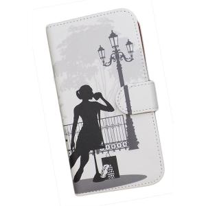 AndroidOne 手帳型 スマホケース プリント ケース ティータイム レディ 街灯 モノトーン