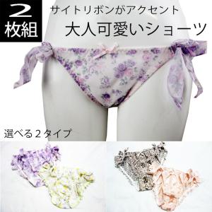 セシール Mサイズ Sサイズ サイドリボンが可愛いショーツ2枚組 ヒョウ柄 花柄 レディース 下着 パンツ パンティー (ポスト投函 送料無料)
