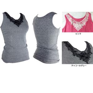 (ポスト投函 送料無料) セシール LLサイズ 綿混レース付タンクトップ インナー レディース UP778グレー