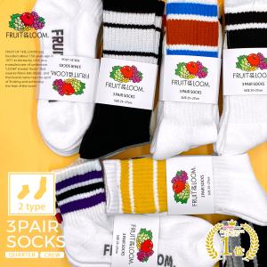 ラインソックス 靴下 3足セット 3足 フルーツオブザルーム ソックス メンズ レディース FRUIT OF THE LOOM 25cm-27cm ミドル ロゴ クルー丈 ハイソックス