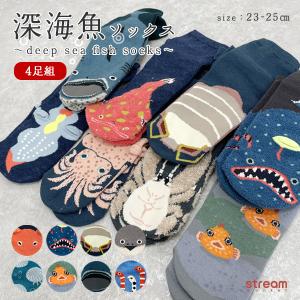 靴下 レディース セット おしゃれ 4足組 ソックス 深海魚 グッズ ダイオウグソクムシ サメ メンダコ サカバンバスピス ギフト 23-25cm ゆうパケット送料無料