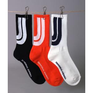 靴下 (LG)「UNIVERSAL OVERALL」「3足セット」ビッグ ロゴ クルー ソックス メンズ レディース