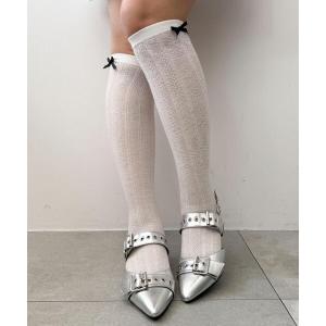 靴下 WEGO/リボンスカシアミハイソックス レディース