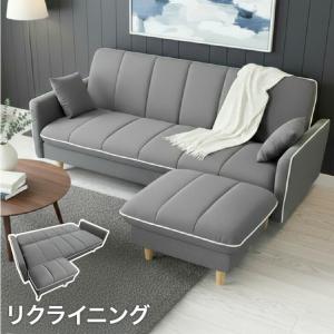 ソファ 3人掛け おしゃれ ソファー オットマン付き ローソファ リクライニング 手動 ソファベット カウチソファ リクライニングソファ 北欧 超大型