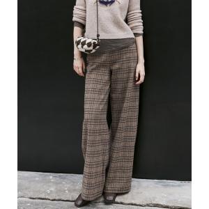 スラックス パンツ 「tageechita」ウール混 チェック起毛ワイドストレートパンツ レディース