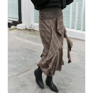 スカート 「tageechita」ウール混 イレギュラーフレーク チェック起毛Aラインスカート