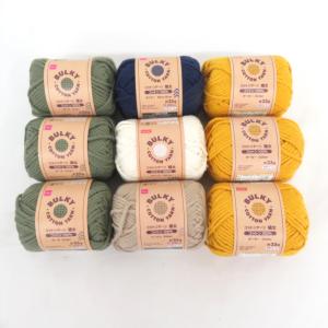ダイソー 毛糸 BULKY バルキーコットンヤーン 9玉セット 1玉25g 約23m 極太 オーカー カーキ ベージュ ネイビー ホワイト 未使用品