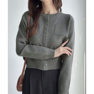 カーディガン ボタンデザインクルーネックニットカーディガン レディース