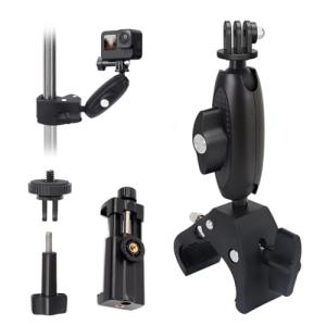 スーパークランプ 360°回転 角度調整 カメラホルダー チューブクロスバー デスク三脚 1/4 3/8ネジ 自転車・バイク・オートバイクリップ