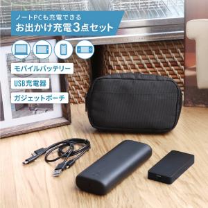 おでかけ3点セット モバイルバッテリー 20000mAh AC充電器 USB Type-C×1ポート PD出力対応 ガジェットポーチ