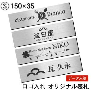 ロゴマークOK 看板 表札 会社 プレート ステンレス調 シルバー S 150×35 屋外対応 オーダー データ入稿で看板製作 銀色 シール式 メール便送料無料