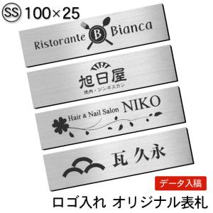 ロゴマークOK 表札 会社 プレート ステンレス調 シルバー SS 100×25 屋外対応 デザイン表札 オーダー データ入稿で看板製作 銀色 シール式 メール便送料無料
