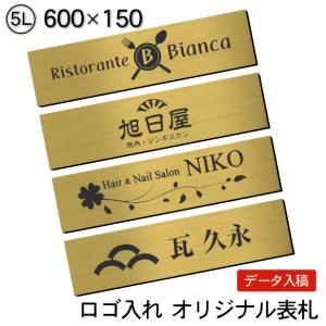 ロゴマークOK 表札 会社 プレート 真鍮風 ゴールド 5L 600×150 屋外対応 デザイン表札 オーダー データ入稿で看板製作 金色 シール式 送料無料