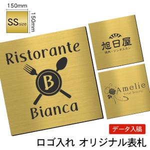 看板プレート ロゴマーク 小さな看板 会社 店舗 校正付 SS 150×150 正方形 四角 真鍮風 ゴールド 金色 15cm 高耐久 屋外対応 シール式 データ入稿必須 送料無料