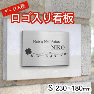 ロゴマークOK 小さな看板 表札 プレート ステンレス調 シルバー S 230×180 屋外対応の小さな看板製作 オーダー データ入稿 おしゃれ 銀色 シール式 送料無料