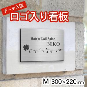 ロゴマークOK 大きい看板 表札 プレート ステンレス調 シルバー M 300×220 屋外対応の大きい看板製作 オーダー データ入稿 おしゃれ 銀色 シール式 送料無料