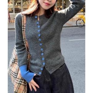 カーディガン 袖配色切り替えクルーネックニットカーデ レディース カーディガン 袖配色切り替えクルーネックニットカーデ レディース5,830円