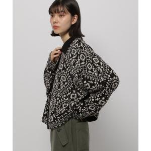 カーディガン 幾何ハート柄襟ZIPカーディガン レディース