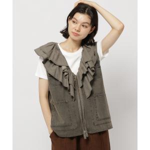 ベスト ジレ 2WAY衿フリルデニムベスト レディース