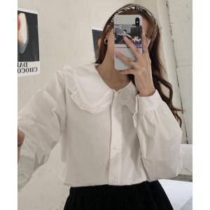 ブラウス シャツ フリル襟ビッグカラーシャツブラウス レディース