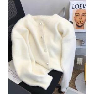 カーディガン 「 nico nico / ニコニコ 」ふんわりフェイクミンク クルーネックカーディガン(厚手・ミディ丈) レディース
