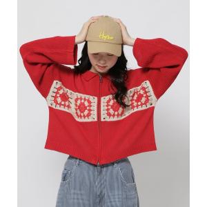 カーディガン クロシェZIPカーディガン レディース