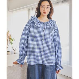 ブラウス シャツ リネンブレンドフリルブラウス レディース