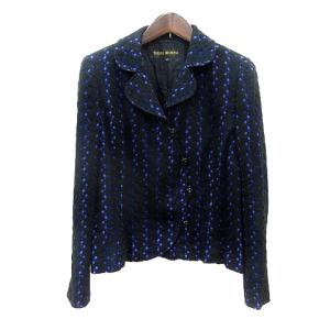 タケオニシダ TAKEO NISHIDA テーラードジャケット ニット 総裏地 11 L 黒 ブラック 青紫 パープル /MN レディース