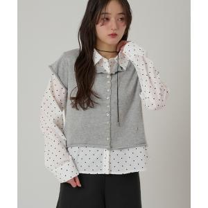 ブラウス シャツ layered-look knit shirt top / ドッキングレイヤード風ニットシャツ レディース