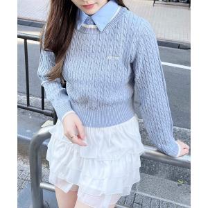 ニット セーター シャツ襟付/配色ロゴケーブルニット レディース ニット セーター シャツ襟付/配色ロゴケーブルニット レディース1,980円