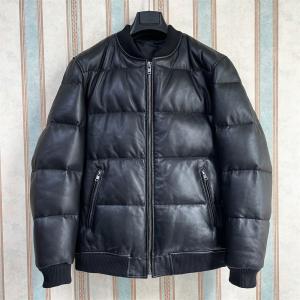 20%SALE レザー ダウンジャケット EU製 FRANKLIN MUSK ニューヨーク発 グースダウン90% 羊革 厚手 防寒 革ジャン ライダース MA-1 バイク メンズ