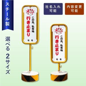 この先、私有地 行き止まり スチール置き看板 / 屋外 両面 立入禁止 スタンド看板 立て看板 置き看板 O-17-B26
