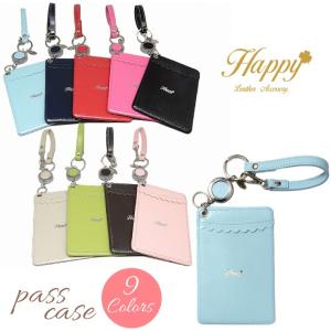 Happy パスケース -01 本革 牛革 定期入れ リール レザー シンプル プレゼント ギフト 通勤 通学 スイカ パスモ イコカ suica pasumo icoca 【メール便対応】 ┃