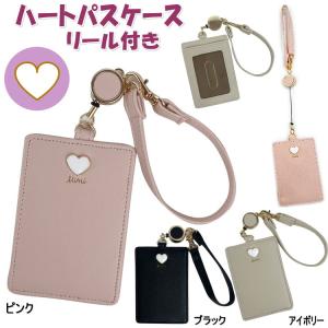 リール付き パスケース 可愛くて仕方がないパスケース Lovely ハート ピンク ブラック アイボリー伸びる カードケース 定期入れ ハッピーアイテム 便利 かわいい