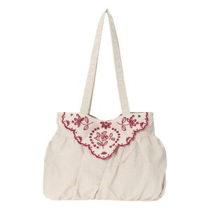ハンドバッグ ローズ柄スカラップ刺繍バッグ