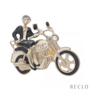 シャネル CHANEL マドモアゼル ココマーク ブローチ GP ラインストーン ゴールド ブラック ホワイト バイクモチーフ ヴィンテージ レディース 中古