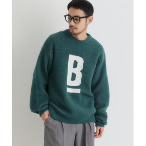 セーター ニット 「BACK NUMBER」ダブルジャガードロゴクルーネックセーター (大胆ロゴ / リラックスフィット / 柔らかい素材 / 多彩な
