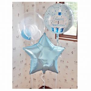 バルーン電報 1歳誕生日 パーティバルーン 祝電 1stバースデイ・カップケーキ 3バルーン セパレートタイプ For BOY お誕生日 あすつく ヘリウム缶