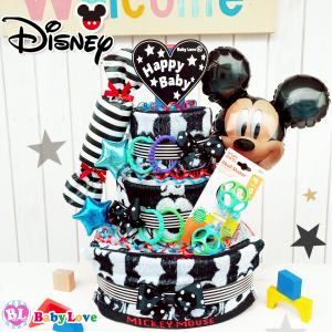 出産祝い ミッキー おむつケーキ ディズニー オムツタワー 男の子 ベビーシャワーケーキ オムツケーキ 4段