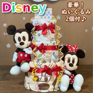おむつケーキ 出産祝い ディズニー 3段 男の子 女の子 おしゃれ メッセージ 名入れ 二人目 ミッキー ミニー 大 オムツケーキ