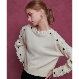 ニット セーター 「LOULOU WILLOUGHBY」ショルダーレース釦プルオーバー レディース